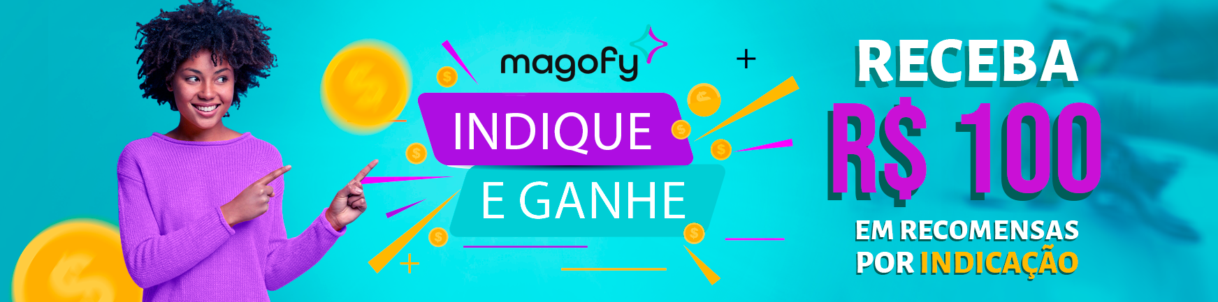 Indique e Ganhe Magofy: você ganhará recompensas por cada indicação que fizer, como retribuição por este ato tão importante e pelo qual somos muito gratos. Ao indicar amigos e pessoas que moram na mesma região, oferecemos R$ 100,00 por cada instalação